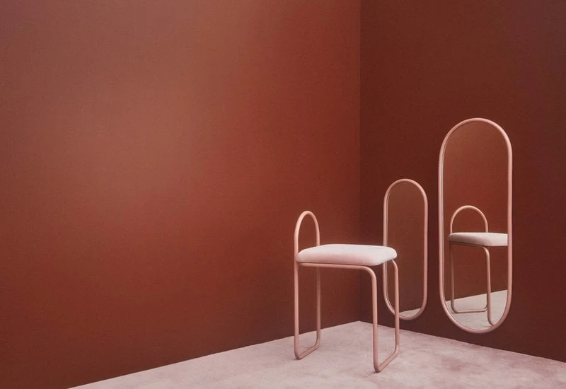 Le miroir Angui de la marque de design danoise AYTM séduit par le contraste de sa forme elliptique et de son cadre solide en forme de tuyau. Grâce à sa conception étroite, Angui s’adapte parfaitement aux petits couloirs et aux vestiaires et ses jolies couleurs ajoutent une touche vive à tout espace.