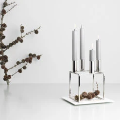 Le chandelier Kubus de By Lassen a été conçu en 1962 par l’architecte et designer danois Mogens Lassen. Lassen s’est inspiré du mouvement Bauhaus, ce qui est visible dans le magnifique design géométrique du bougeoir. Kubus, considéré comme l’une des icônes du design danois, insufflera à votre intérieur une élégance minimaliste.