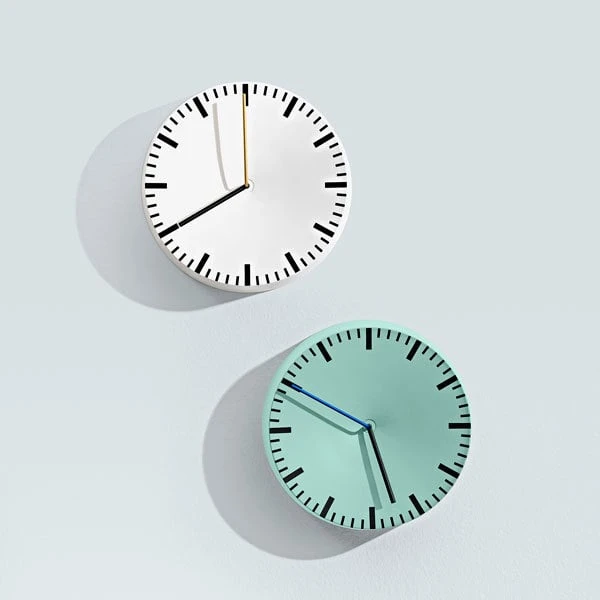 L’horloge murale Analog de HAY présente un beau design graphique emprunté aux baromètres classiques. L’objectif délibéré du designer Shane Schneck était de créer une horloge analogique pour le monde numérique actuel, où les montres principales sont des smartphones. Cette horloge de forme cylindrique simple est fabriquée en aluminium thermolaqué et ses aiguilles de différentes couleurs ont une agréable forme tridimensionnelle. L’horloge murale originale Analog sera superbe au bureau comme à la maison.