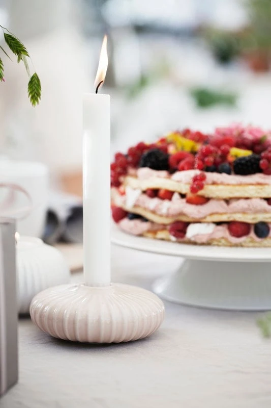 Le bougeoir pour bougie chauffe-plat Hammershøi, conçu par Hans-Christian Bauer pour Kähler, fait partie d’une magnifique collection de céramiques portant le nom de l’artiste et céramiste Svend Hammershøi. Il a travaillé pour Kähler de 1893 à sa mort et ses grands vases et bols étaient souvent ornés de simples sillons verticaux. Le même motif décoratif se répète dans la collection intemporelle Hammershøi, qui convient aussi bien à un usage quotidien qu’à une ambiance festive.