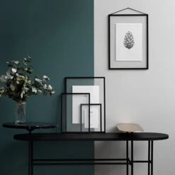 Le cadre sans fond de Moebe se compose de quatre lattes de frêne, de deux feuilles de verre acrylique et d’un long élastique qui permet de maintenir les éléments ensemble et qui fait office de crochet. Il est parfait pour exposer tout ce qui est plat et bidimensionnel, des plantes pressées, des photos et des dessins aux posters transparents Floating Leaves de Paper Collective.