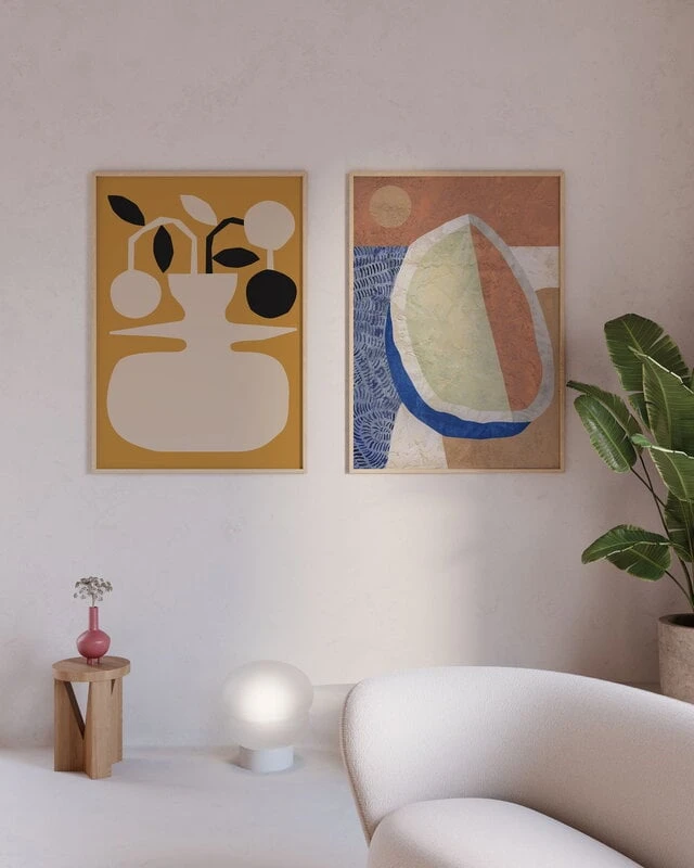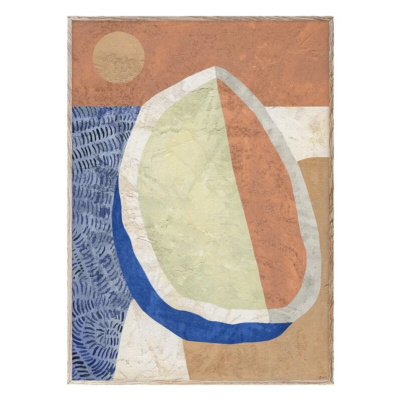 L’affiche Calma 02 de Paper Collective se caractérise par une palette de couleurs douces et dorées qui s’inspire du Mexique, pays d’origine de l’artiste Berenice Hernandez. Au cœur de cette affiche d’art texturée se trouve une tranche de fruit exotique dont les tons froids apaisants créent un contraste intéressant avec la toile de fond aux tons chauds.