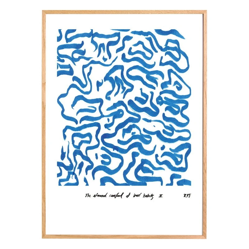 L’affiche Comfort – Blue de Paper Collective représente une interprétation des paysages aux changements incessants vus d’un avion. Peinte à l’encre bleue, l’affiche fait partie d’une collection de paysages abstraits de l’artiste sud-africaine Ronelle Pienaar Jenkin et du Studio Lemon.