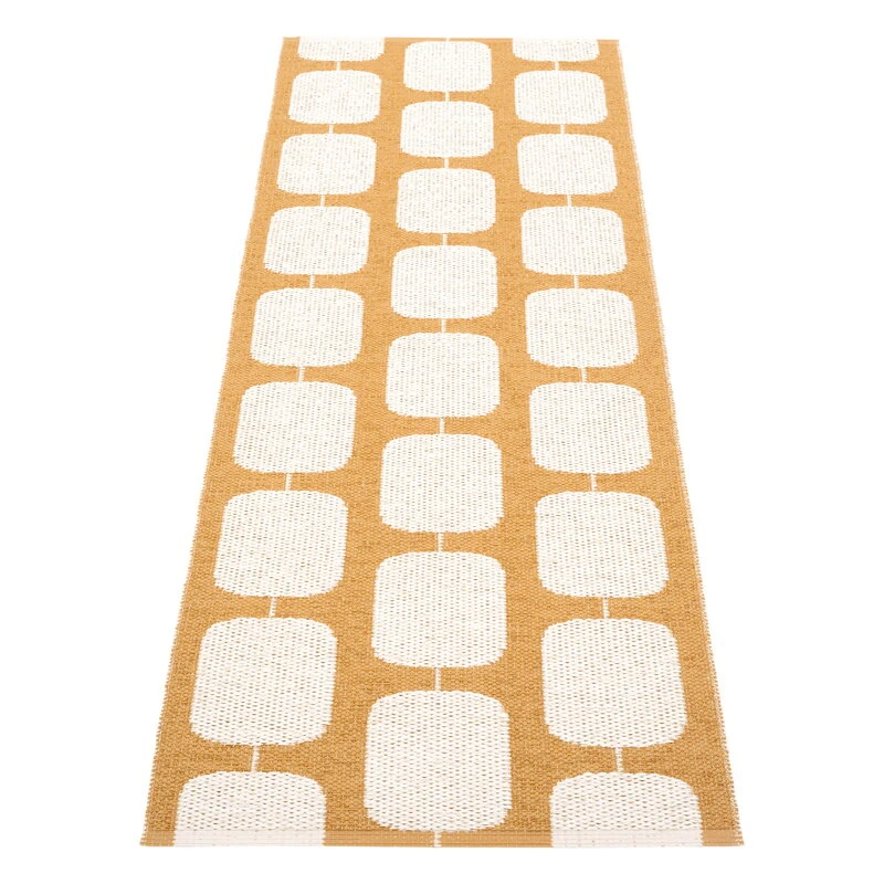 En ruban PVC sans phtalate, le tapis est facile à nettoyer et constitue un choix pratique pour tous les espaces. Grâce à sa forme étroite, ce tapis peut facilement être utilisé comme un magnifique tapis de couloir, un tapis de cuisine ou un tapis d’extérieur. Le tapis Sten est tissé dans le comté de Dalécarlie, en Suède, selon des techniques traditionnelles.