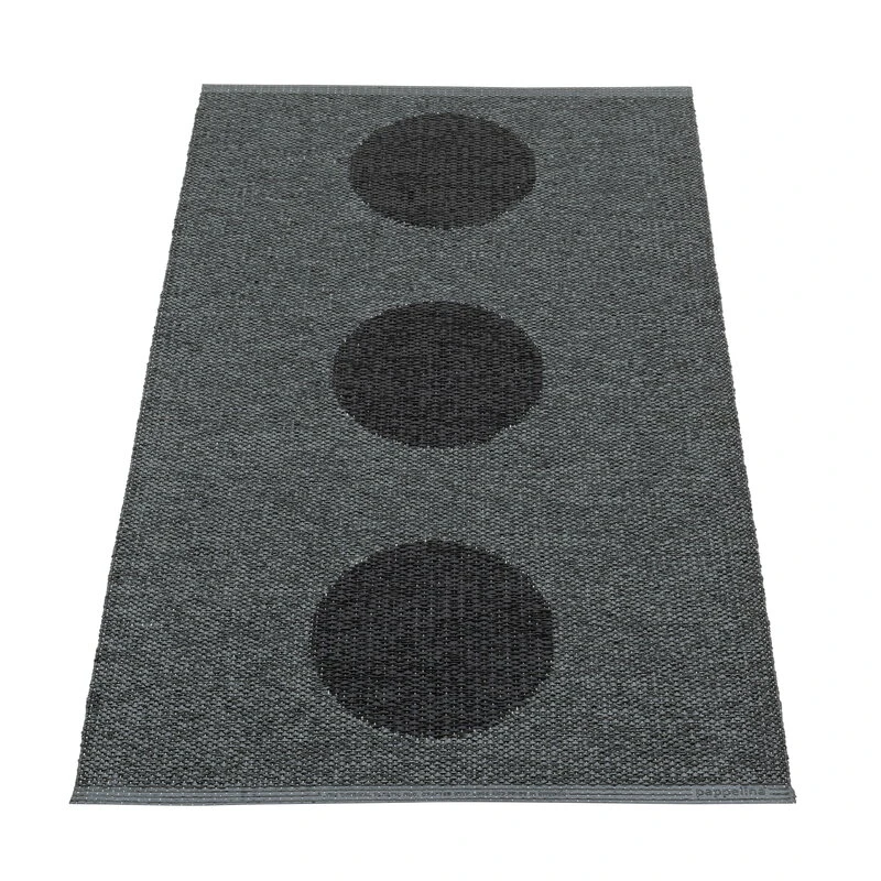 Orné d’une rangée de gros points, le tapis Vera 2.0 de Pappelina apporte une touche simple mais audacieuse à n’importe quelle décoration, ainsi qu’un léger éclat métallique. Son design biface contribue à son aspect ludique : vous pouvez retourner le tapis lorsque vous avez envie d’une nouvelle couleur. Les bords du tapis sont renforcés et soudés pour une durabilité accrue. Vous pouvez laver le tapis à la main ou à la machine à laver.