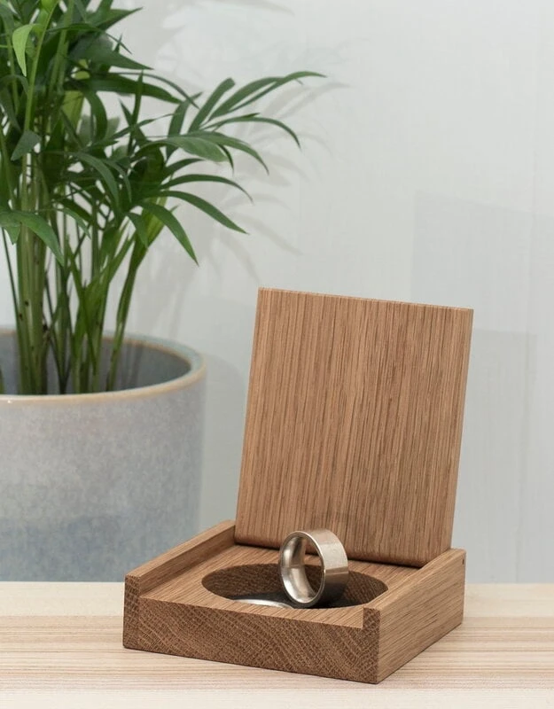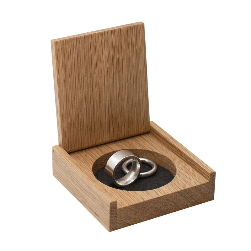 La boîte à bijoux Brick, conçue et fabriquée par Tuulia Penttilä, est un endroit élégant et minimaliste pour les bijoux. Fabriqué en chêne naturel traité, le coffret présente un ton chaud et des motifs de grain naturel, qui agrémentent l’aspect autrement épuré. Au fond de la boîte se trouve un feutre de laine gris, qui constitue une base douce pour vos bijoux préférés. Le chêne symbolise la longévité et la durabilité, ce qui fait que le coffret à bijoux Brick se marie parfaitement avec un cadeau ou une bague de fiançailles, par exemple.