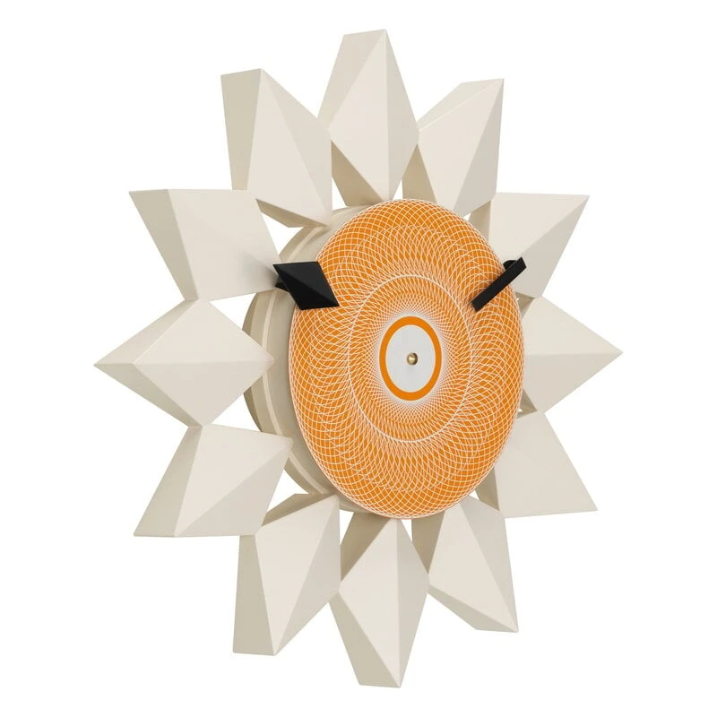 L’horloge Diamond Markers Clock de Vitra attire le regard par sa forme abstraite, semblable à une fleur, composée d’un cercle orange hypnotique entouré de pétales en forme de diamant. Les mouvements à quartz de haute qualité et les détails soigneusement conçus font de cette horloge une pièce d’horlogerie fiable ainsi qu’un superbe objet décoratif.