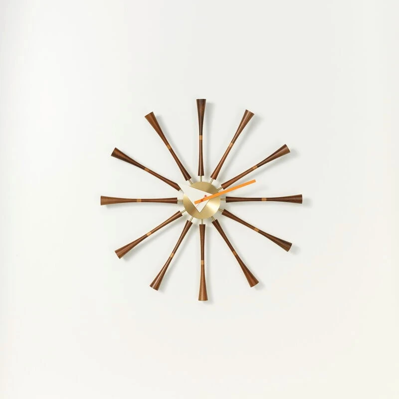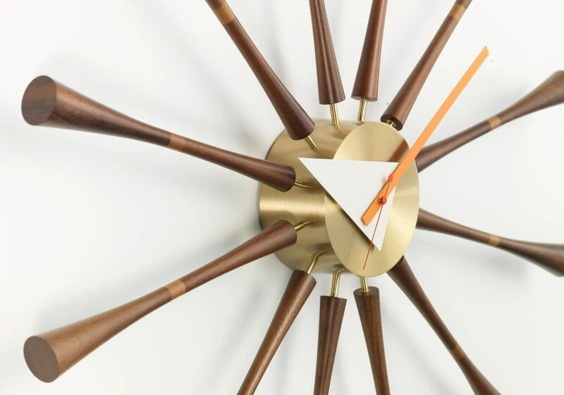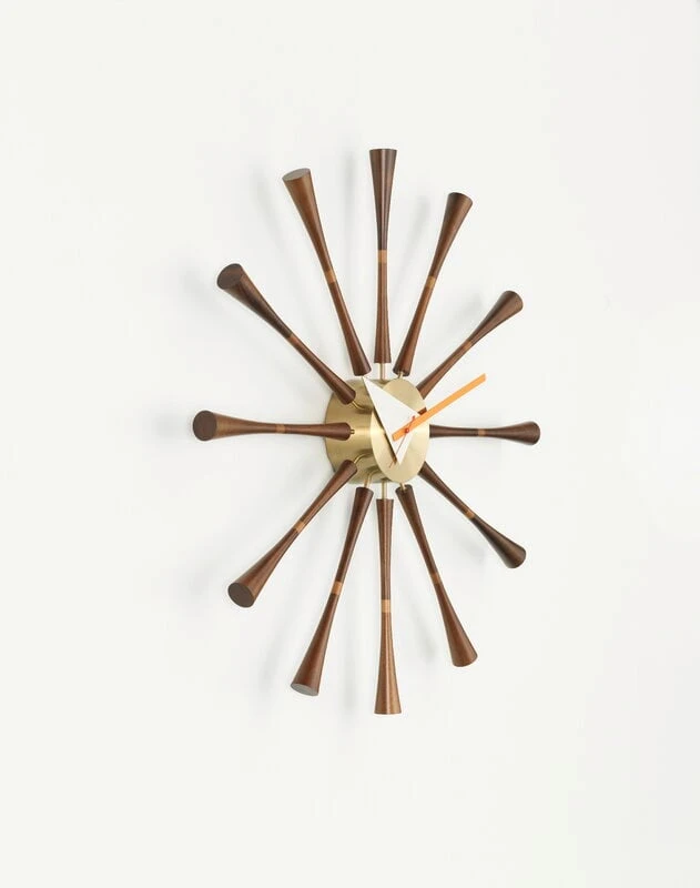 De 1948 à 1960, le bureau de George Nelson a conçu plus de 150 horloges pour le fabricant américain Howard Miller. La collection se compose d’horloges murales et d’horloges de table caractérisées par des formes créatives, un esprit moderne et l’absence de chiffres. Le bureau de Nelson visait à rendre les maisons américaines ordinaires plus modernes et il a réussi avec brio. Aujourd’hui, les horloges sont appréciées comme des classiques du design international et des chefs-d’œuvre du design américain du milieu du siècle.